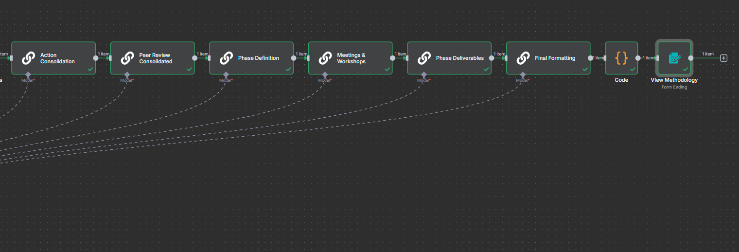 I've developed an automated workflow, which I built using n8n, that takes a user-defined business issue and guides it through several stages of AI-powered analysis and generation, culminating in a detailed, structured methodology.