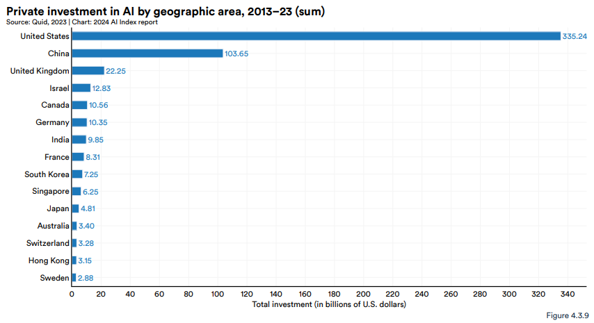 This combination of private-sector leadership and evolving governance efforts has allowed the US to maintain its position as a global leader in AI development. However, balancing innovation with accountability remains an ongoing challenge.