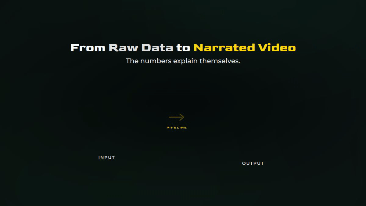 What if that entire process was a pipeline? Data goes in one end. A narrated, animated video comes out the other end. No editor. No timeline. No manual sync. Just code that produces content on demand.